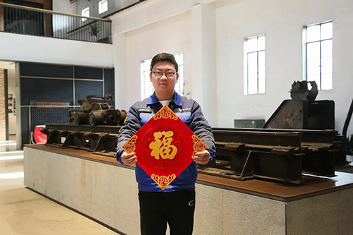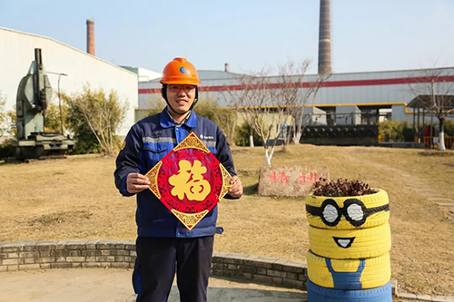 寫完福字后,大家手持福字,興致勃勃地在廠區(qū)內(nèi)的各個特色地點(diǎn)進(jìn)行打卡。
