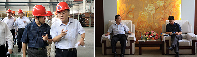 5月26日,新興鑄管集團有限公司劉明忠董事長一行在金壇市經濟開發區相關領導的陪同下,來公司視察。公司董事長(總經理)曹堅,副董事長、黨委書記陳普安以及執行總經理周家華進行了熱情的接待。在曹總等公司領導的陪同下,劉明忠董事長一行視察了熱軋分廠、管加工分廠、特殊扣線以及公司樣品陳列室。