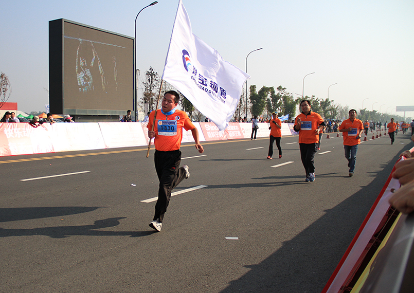 公司也積極組織員工參加了本次賽事活動。公司董事長、總裁等領導及員工共176人,統一著裝,胸前等醒目位置粘貼鮮艷的五星紅旗和公司LOGO,以“我跑步、我健康、我快樂”的風姿,分別參加了半程馬拉松、歡樂中國跑10公里、萬人健步行3公里等3個項目,展現了常寶人奮發進取、積極向上的精神風貌。特別是在萬人健步行3公里項目中,公司組成108人的方陣,在廠旗的引領下,健步前進。常寶精特武克奪得了萬人健步行3公里第一名,為常寶爭奪得了榮譽。