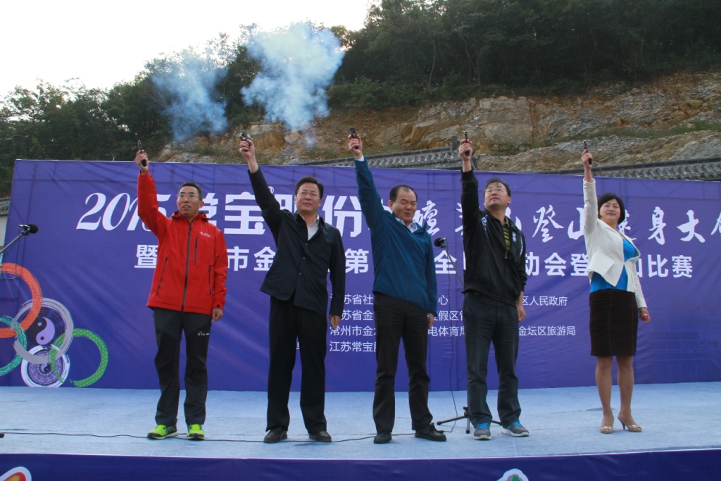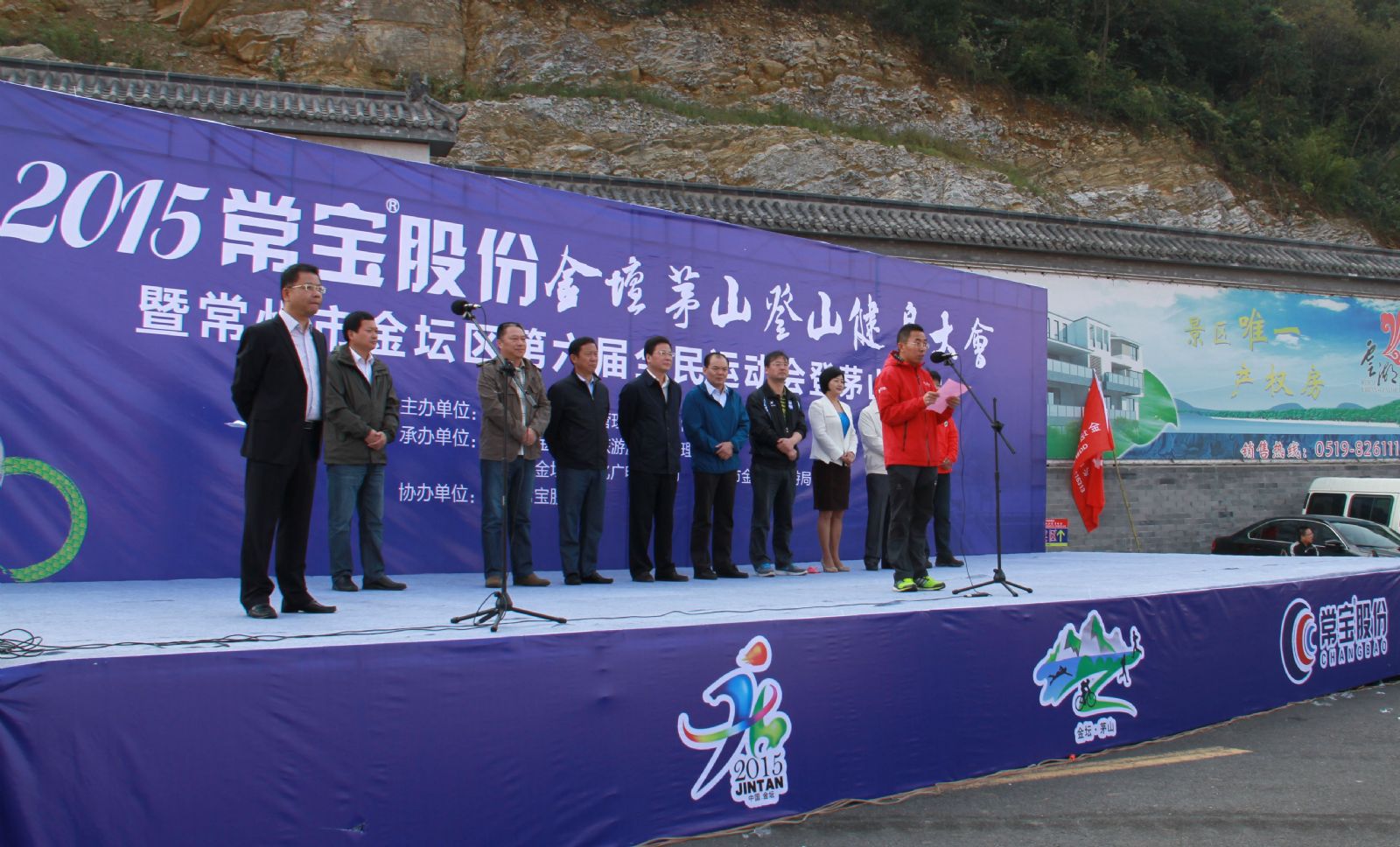 本次登山活動由公司冠名協辦。常寶股份副總經理張蘭永在啟動儀式上代表公司向大會致詞,預祝2015年金壇茅山登山健身大會圓滿成功,祝運動健兒們取得優異的成績,并與省社會體育管理中心、金壇市等領導共同為本次登山活動鳴槍發令。